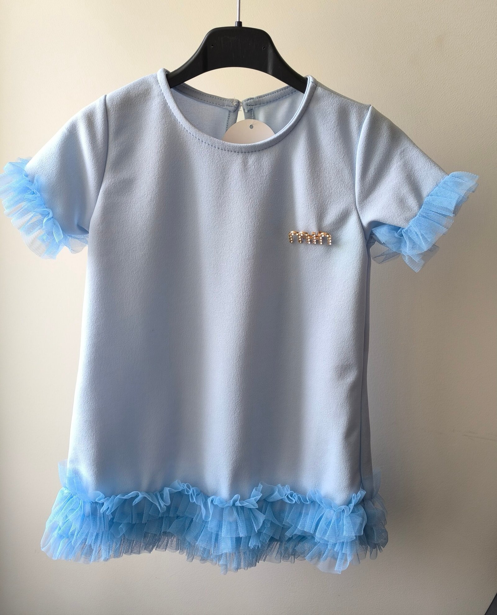 Suknelė su tiulio juostelių detalėmis, GELTONOS spalvos, su „min” ženkliuku (dydžiai: 3-14 metų)20.00€